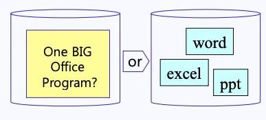 실제로 우리가 word, excel, ppt와 같은 프로그램을 1개의 실행 파일로 만들지 않고 여러 개의 실행 파일로 분리하는 이유는 간단합니다.