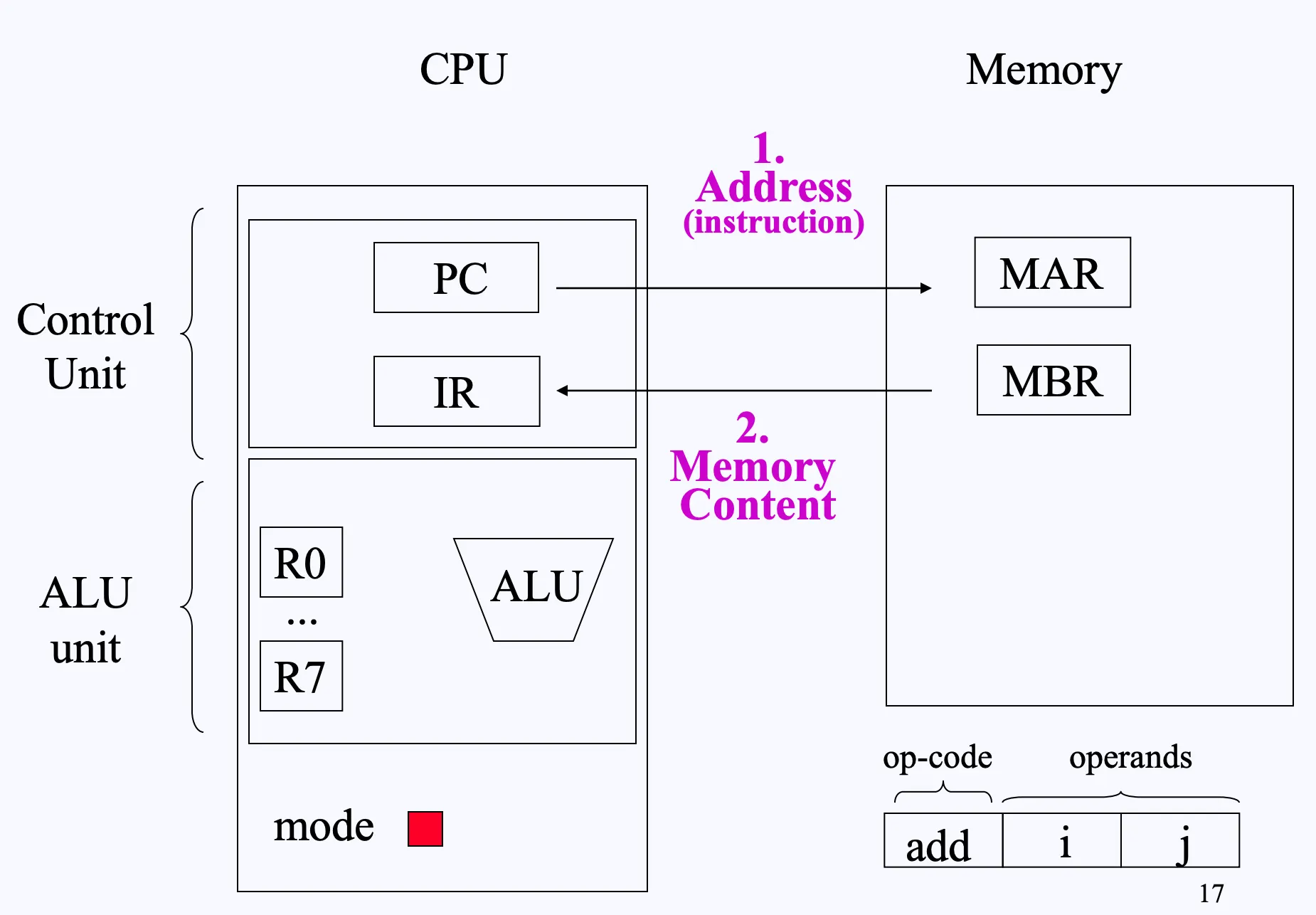 MAR에 저장된 메모리 주소에 접근해 저장된 내용(Instruction)을 MBR(Memory Buffer Register)로 저장