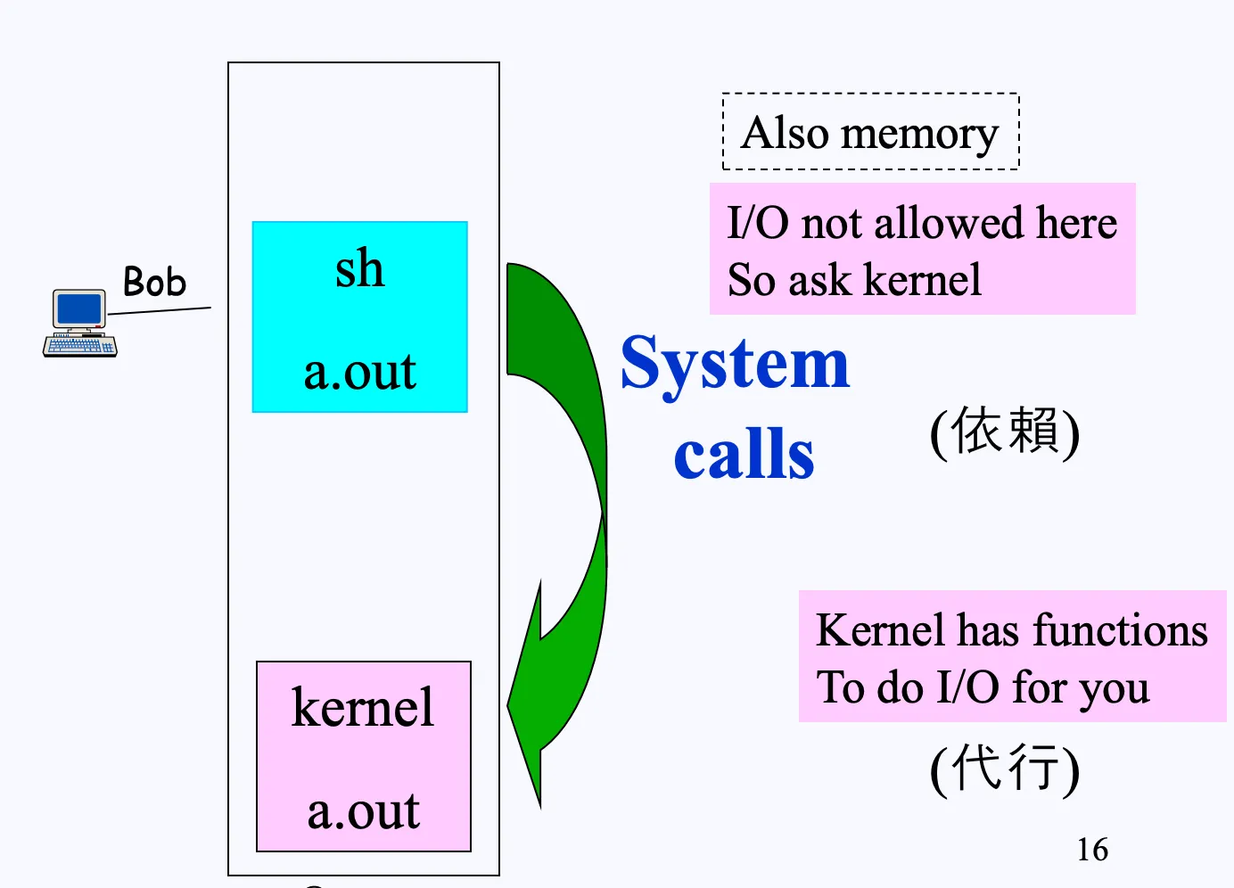 System Call이란 커널에게 대신 요청해서 I/O를 수행해 달라고 전달합니다.