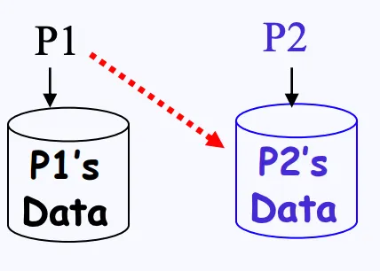 만약 P1 프로세스가 P2 프로세스의 데이터를 read, write 할 수 있다면, 이는 명백한 보안 결함입니다.