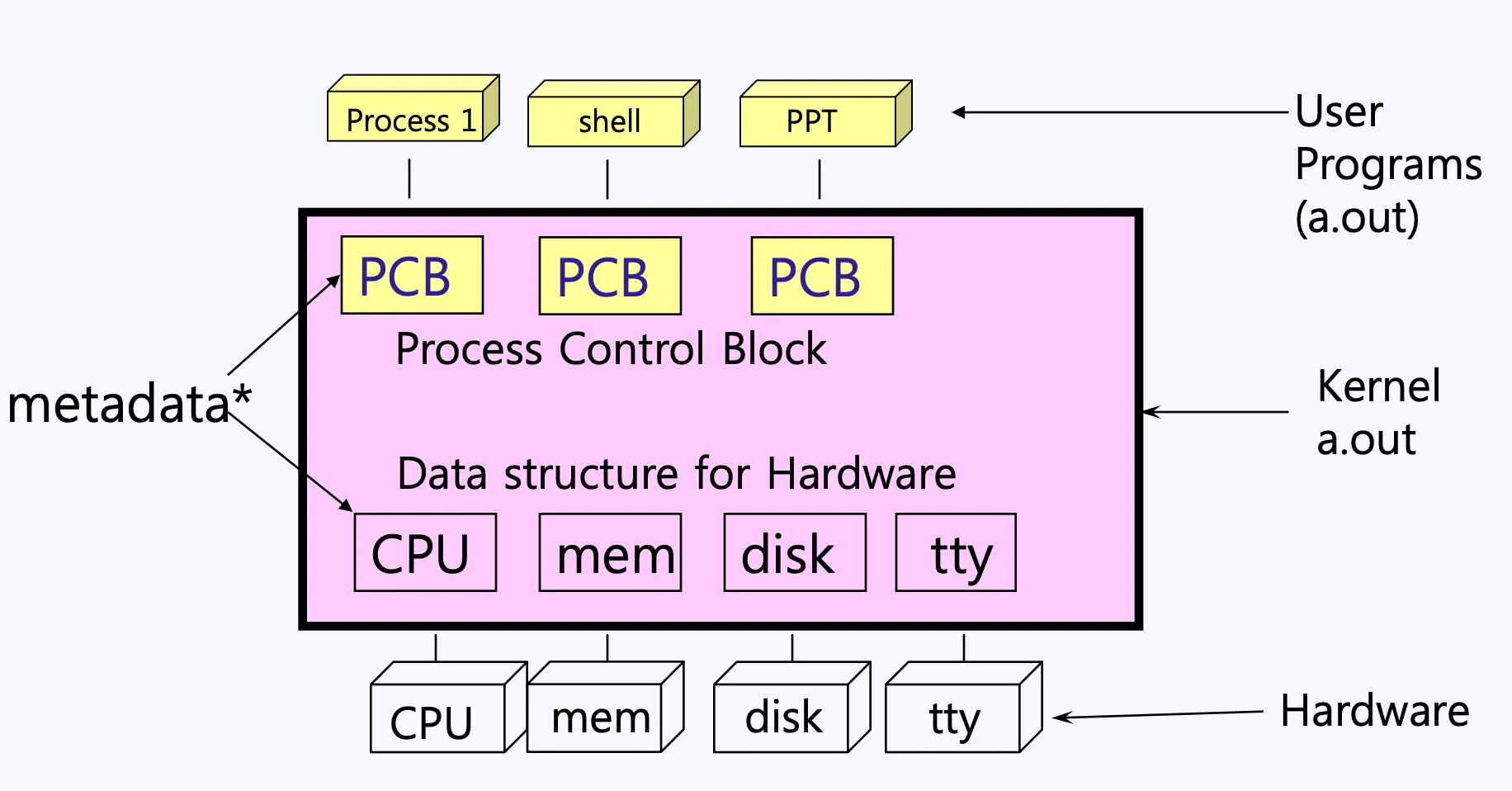 운영체제는 하드웨어와 프로세스 등을 관리하기 위해서 메타데이터(metadata)를 사용합니다.