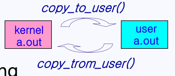 이러한 상황을 방지하기 위해, 커널 메모리와 사용자 메모리 사이에서 데이터를 읽거나 쓸 때는 copy_from_user와 copy_to_user 함수를 사용합니다.