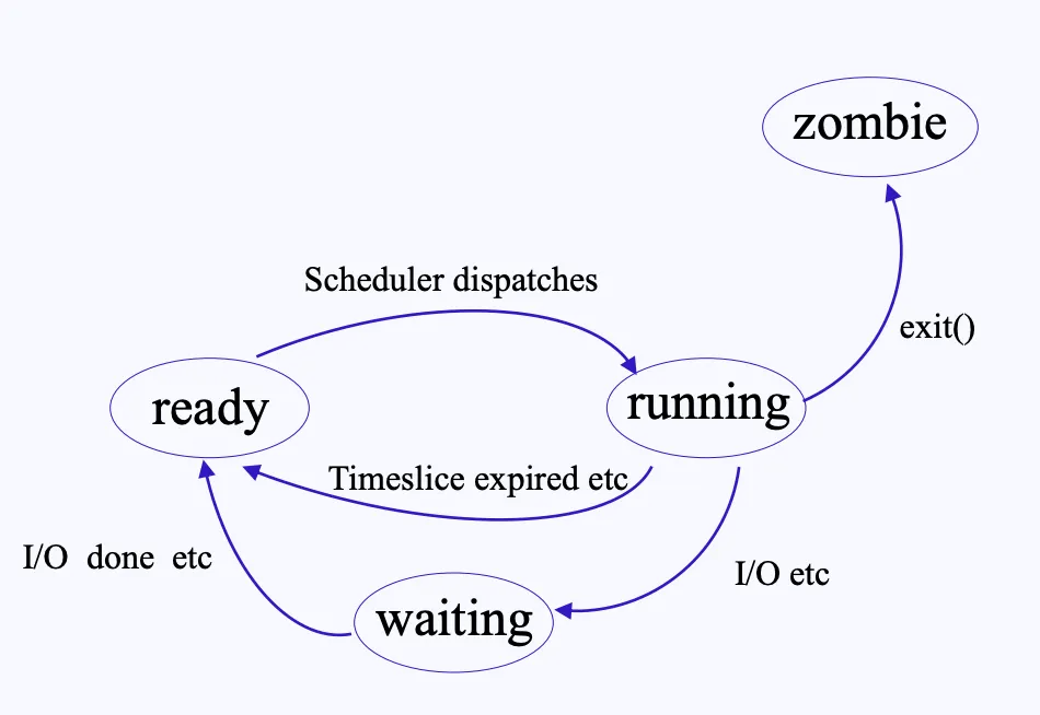 TASK_ZOMBIE의 state의 경우 프로세스가 종료되어 대부분의 자원은 회수되었지만, 부모에게 전달할 종료 정보만 PCB(task_struct)에 남아 있는 상태입니다. → 부모 프로세스에서 wait()을 호출하면 해당 task_struct는 완전히 제거됩니다.