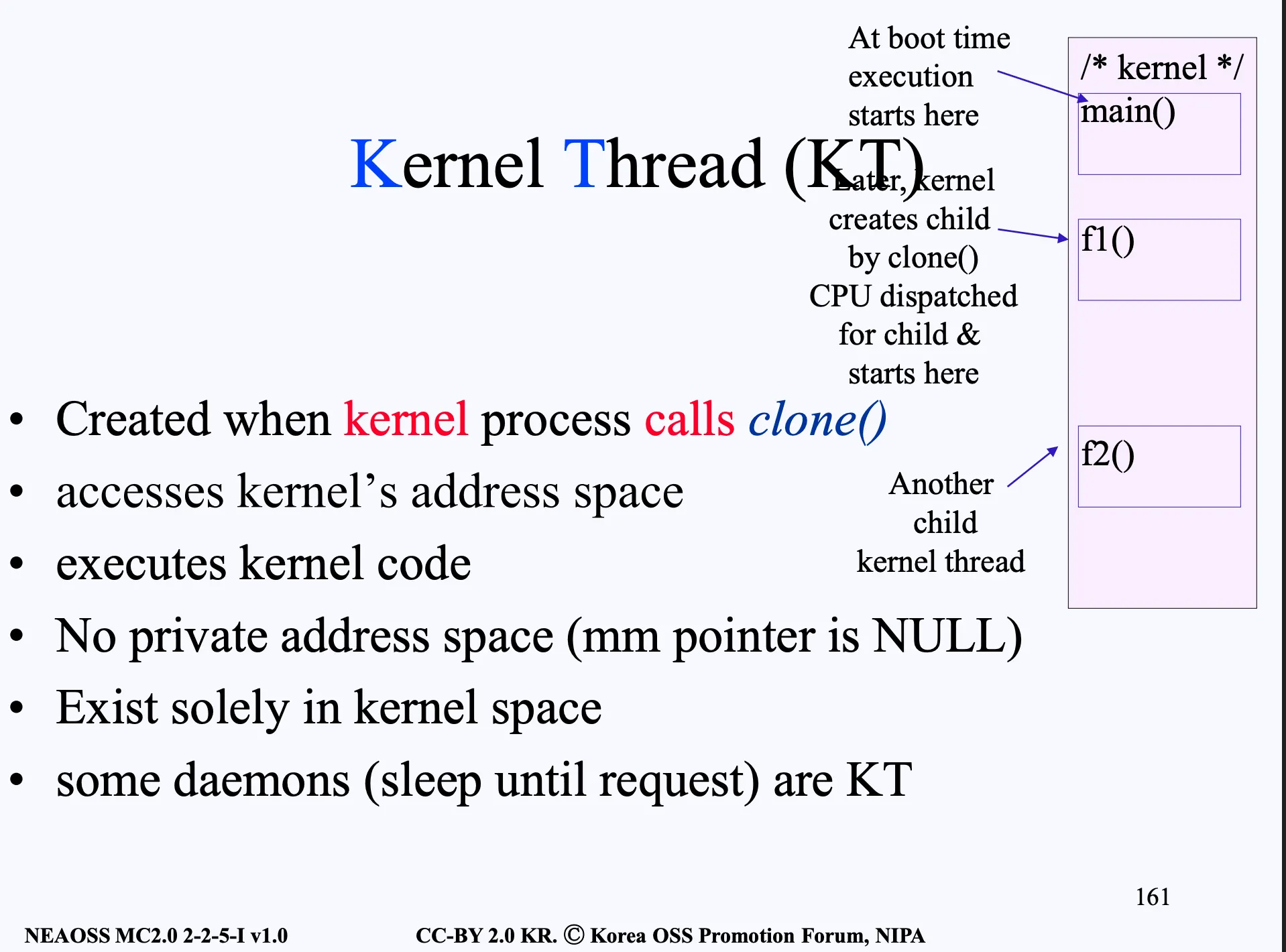 커널도 프로그램이 실행되는 동안 내부 작업 처리를 위해 kernel_thread()나 kthread_create()을 통해 커널 스레드를 생성합니다.