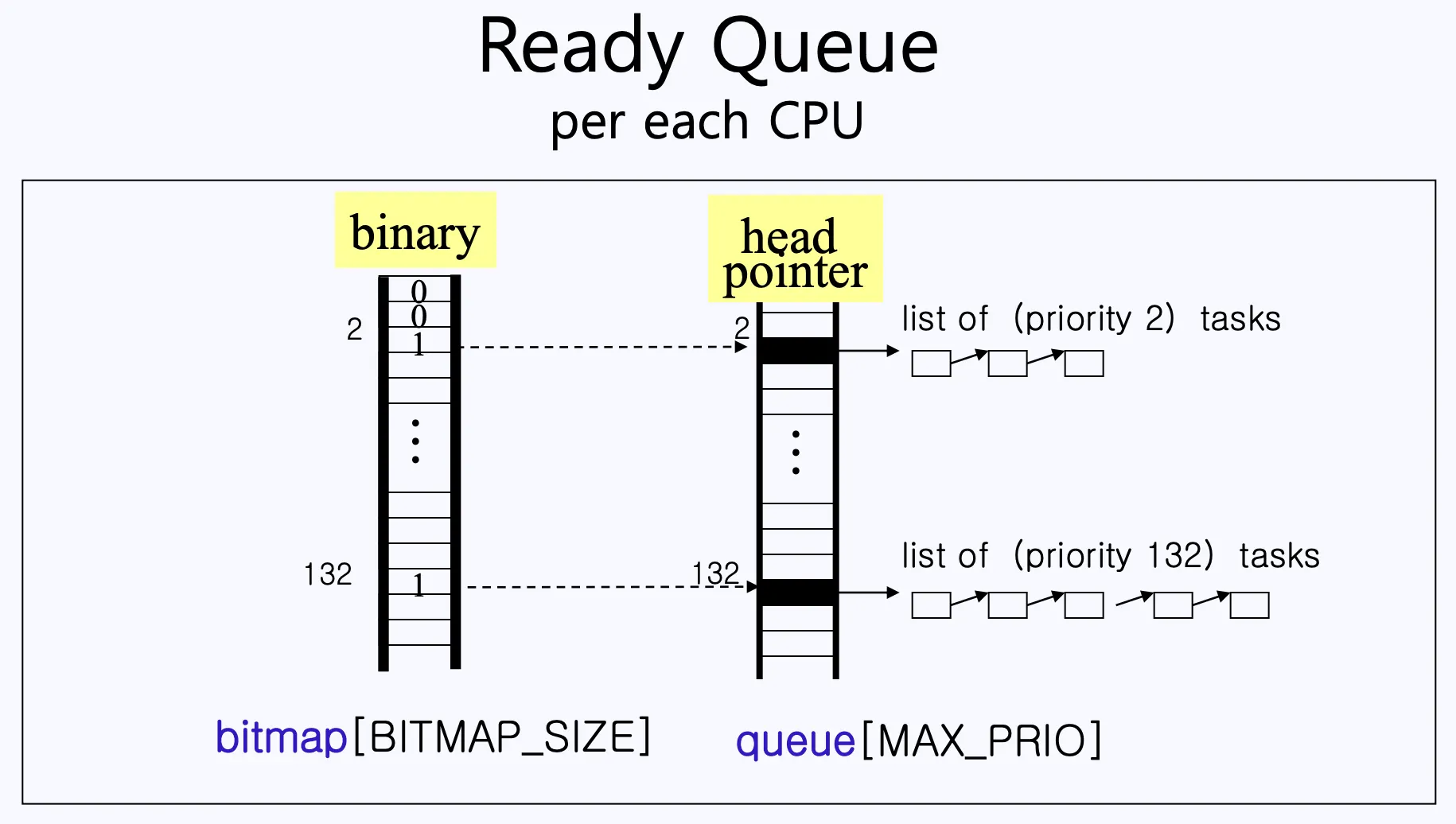 비선점(non-preemptive) 방식 → 커널 모드 실행 중에는 CPU 선점을 허용하지 않음