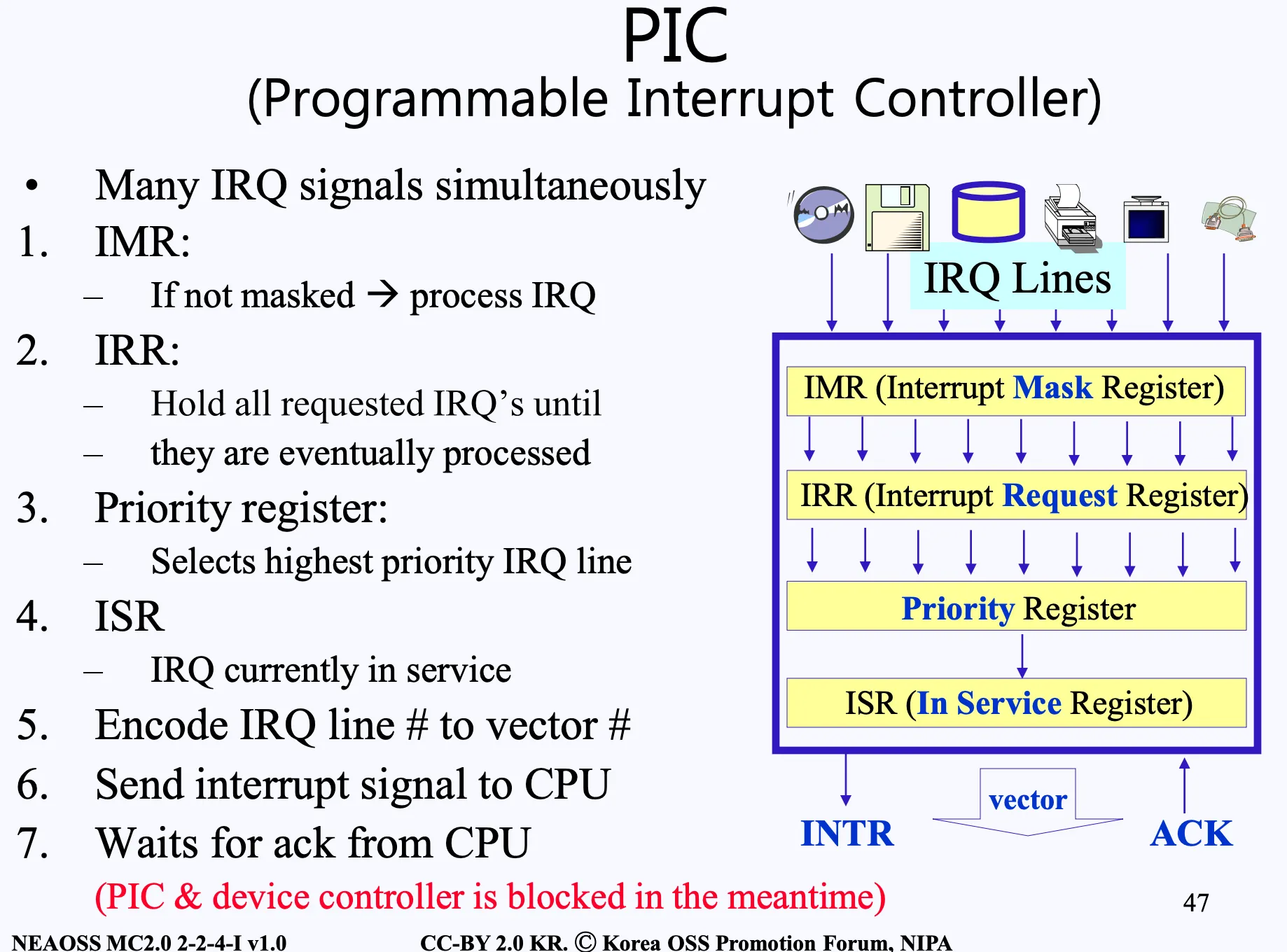 PIC는 인터럽트 우선순위를 고려하여 CPU가 처리할 인터럽트를 선택해 전달합니다.