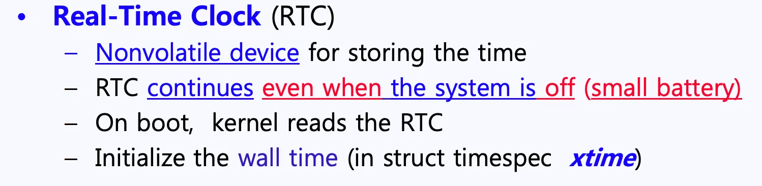 운영체제에서 시간을 관리하는데, System Timer와 Real-Time Clock 두 가지를 사용합니다.
