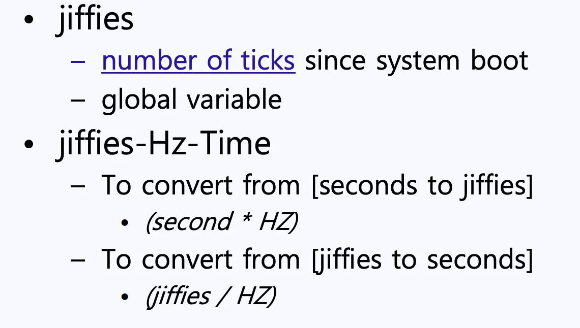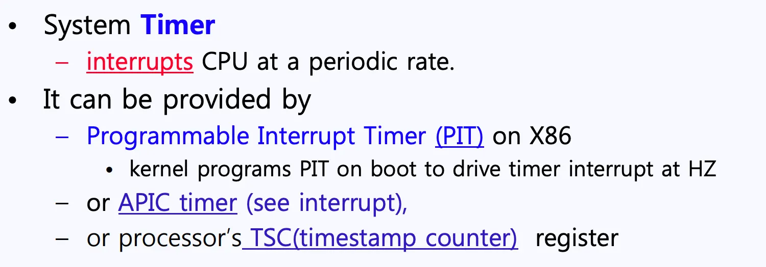 CPU로 HZ 주기의 타이머 인터럽트를 발생시키며, 커널이 현재까지 몇 개의 타이머 tick이 지났는지 알아내기 위해 사용합니다.