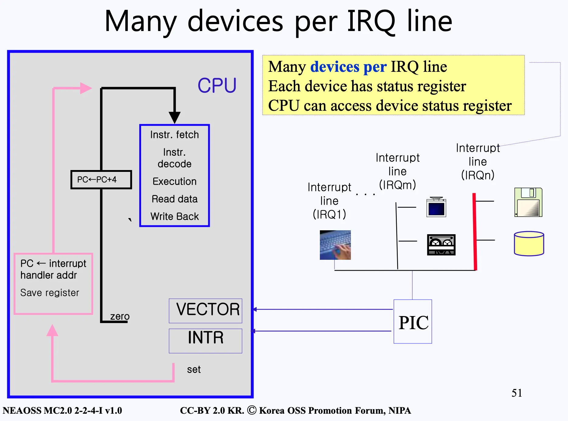 각 디바이스는 특정 IRQ 라인에 연결되어 있으며, 인터럽트가 발생하면 해당 요청이 PIC로 전달됩니다.