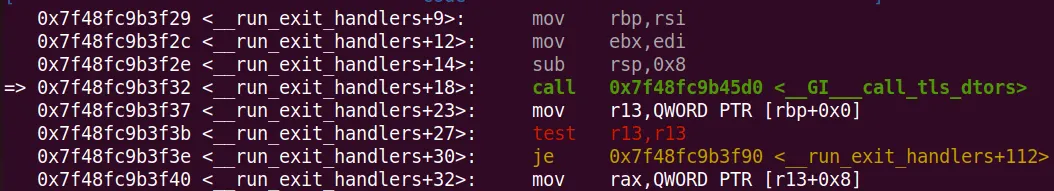 si를 통해서 __run_exit_handlers 함수도 계속 분석을 진행하면 __GI___call_tls_dtors을 call 하는 것을 확인할 수 있으며, 해당 함수는 rtld와 관련이 없으므로 계속 진행하겠습니다.