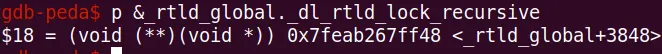 위에서 분석한 내용을 토대로 dl_rtld_lock_recursive가 실행하는 함수는 _rtld_global+3848임을 확인할 수 있으며, 이는 아래와 같이 &_rtld_global._dl_rtld_lock_recursive임을 확인할 수 있습니다.