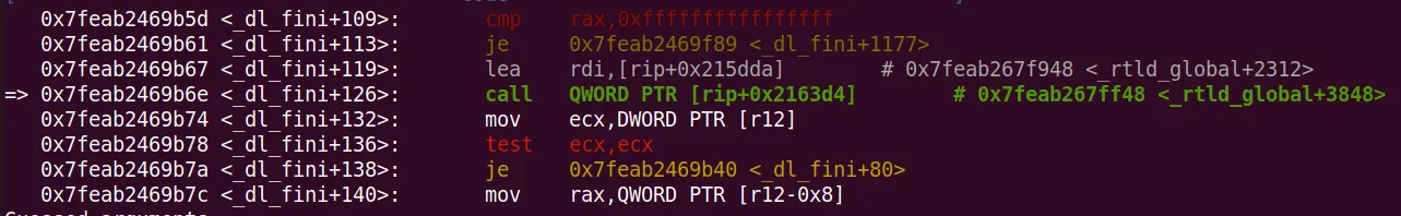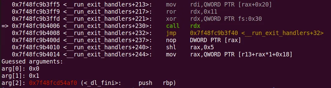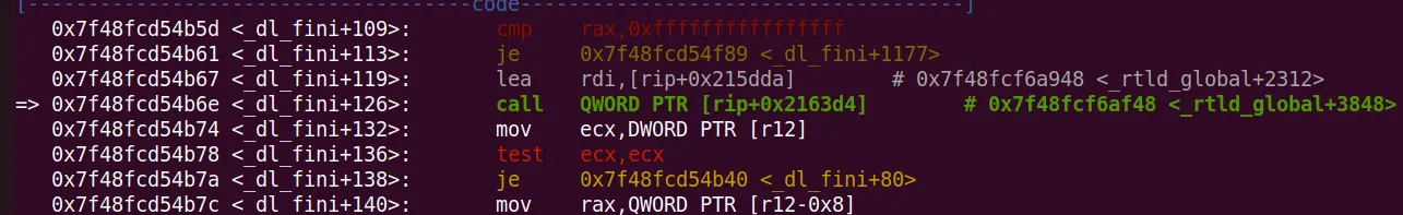 즉 위에서 분석한 내용을 토대로 __run_exit_handlers 함수는 _dl_fini 함수를 실행합니다.