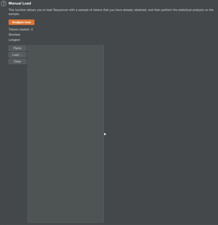 Manual Load는 획득한 Token Sample을 Sequencer에 로드한 뒤 Sample에 대한 통계 분석을 진행합니다.