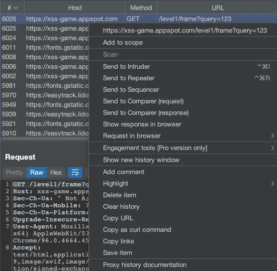 HTTP history와 같은 캡처 혹은 캡처된 Request에 마우스 오른쪽을 눌러 Send to SComparer로 전송할 수 있습니다.