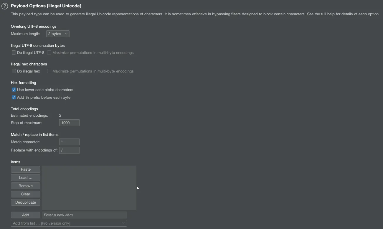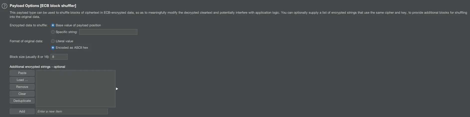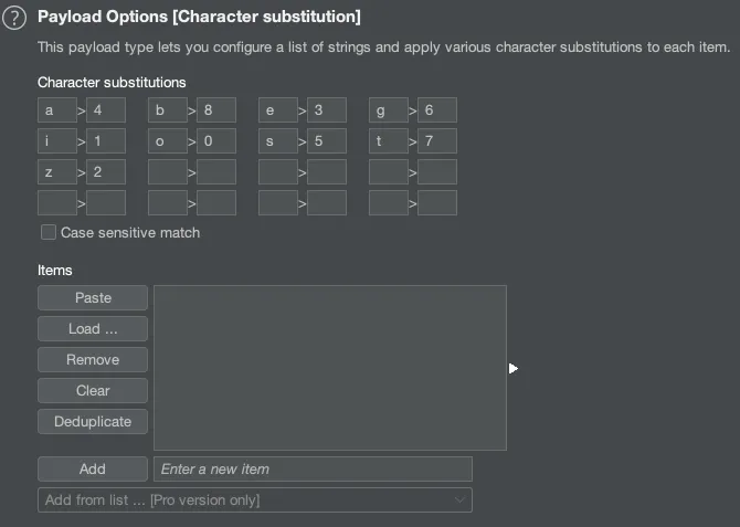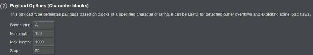 지정된 문자 또는 문자열의 블록을 기반으로 Payload를 생성하여 공격할 수 있습니다.