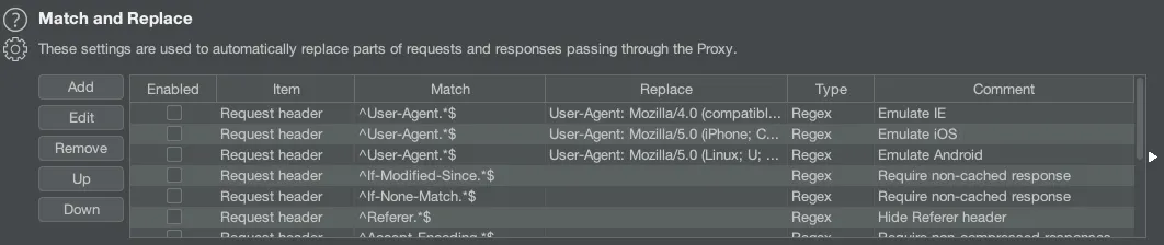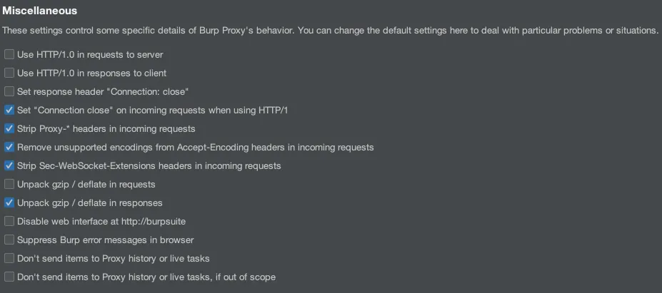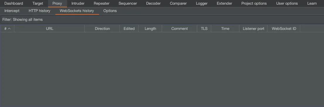 WebSocket으로 송수신 하는 데이터의 Intercept 여부를 설정할 수 있습니다.