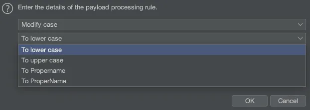 Payload에서 지정된 대소문자를 수정합니다.
