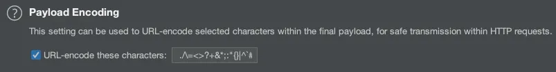 HTTP 요청시 Payload내의 어떤 문자를 URL로 인코딩하는지 정의하는 부분입니다.