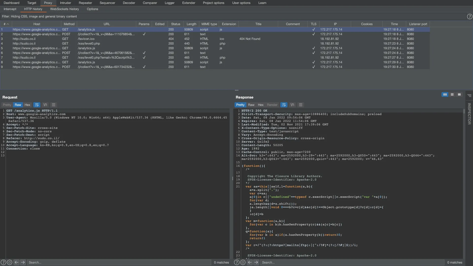 Proxy는 Burp Suite를 이용해 정보를 확인할 수 있습니다.