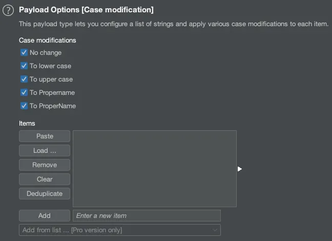 문자열 목록을 구성하고 대소문자를 변환하여 공격할 수 있습니다.