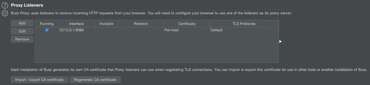 Proxy Server를 설정하여 정보를 받아올 수 있으며, CA Sertificate를 내보내거나 다시 생성할 수 있습니다.