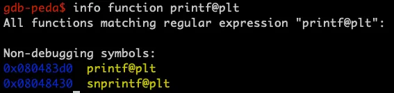# info printf@plt