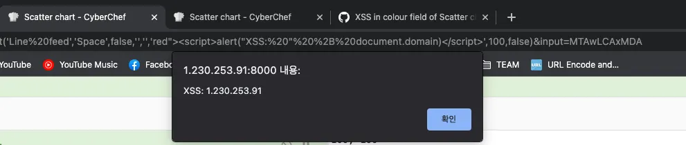 실제 CTF URL에 입력시 XSS가 발생하는 것을 확인할 수 있습니다.
